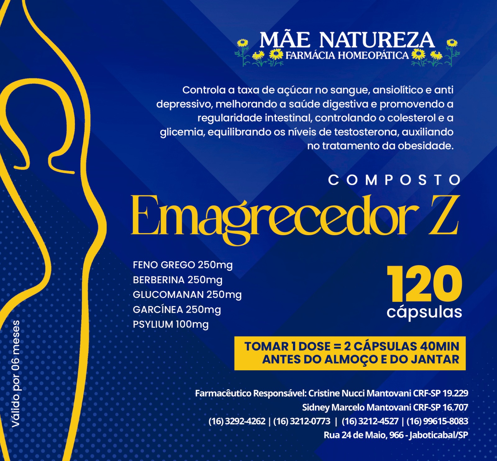 Tomar 1 dose = 2 cápsulas 40min antes do almoço e do jantar