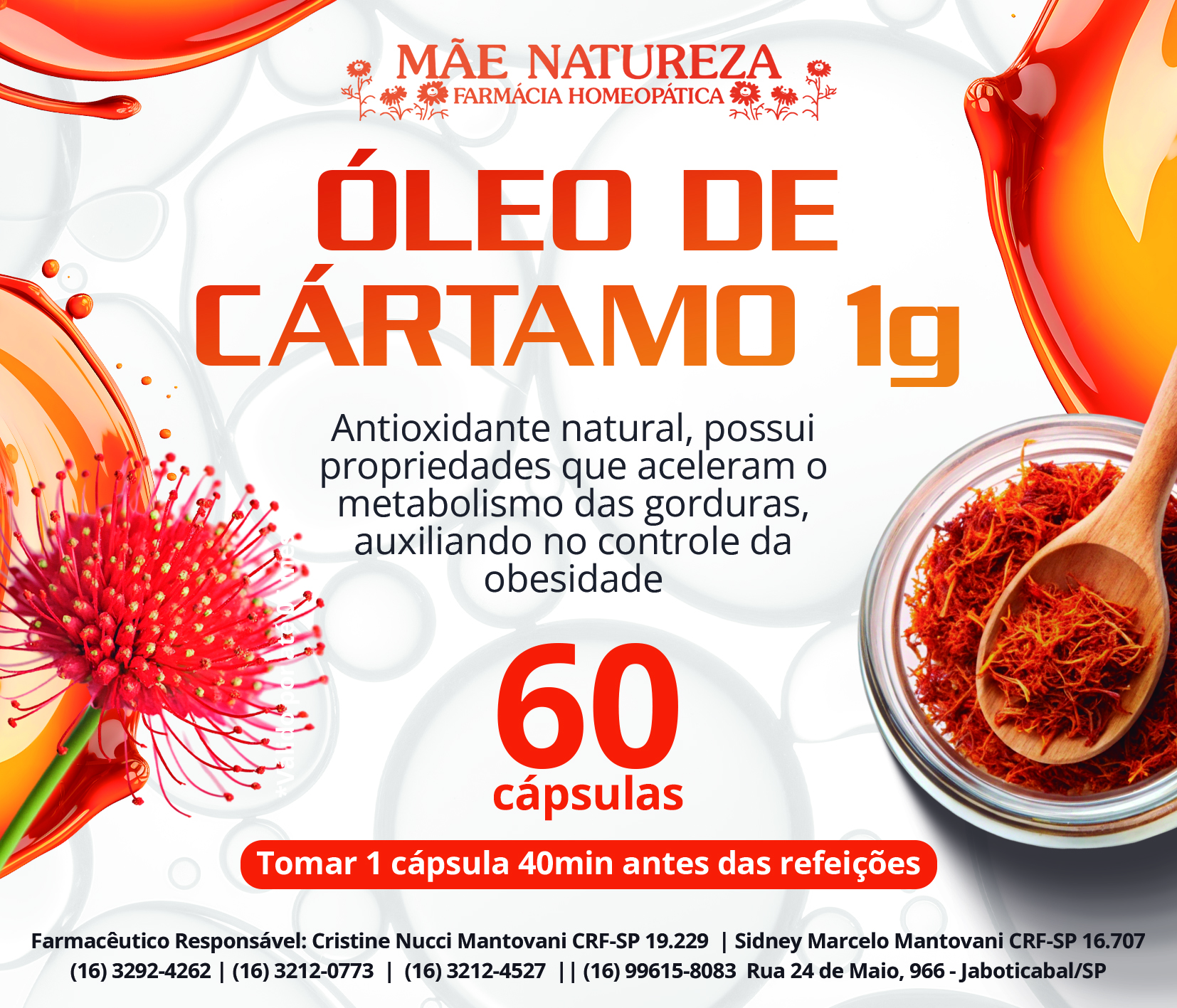 O óleo de cártamo, rico em ácidos graxos essenciais (ômega 6 e 9) e vitamina E, é popularmente utilizado para auxiliar na redução de gordura abdominal, aumento da saciedade, controle do colesterol e ação anti-inflamatória. Também ajuda a proteger a pele e auxiliar na recuperação muscular pós-treino